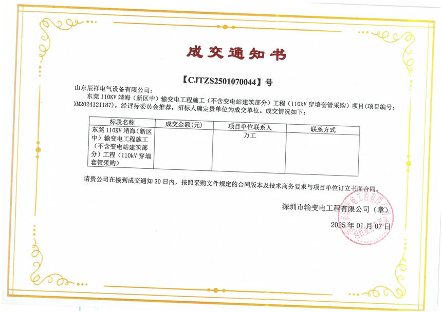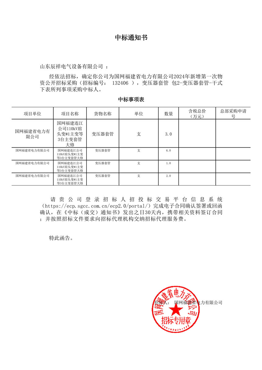 2025.02.14 110kV瓷絕緣穿墻套管中標通知書